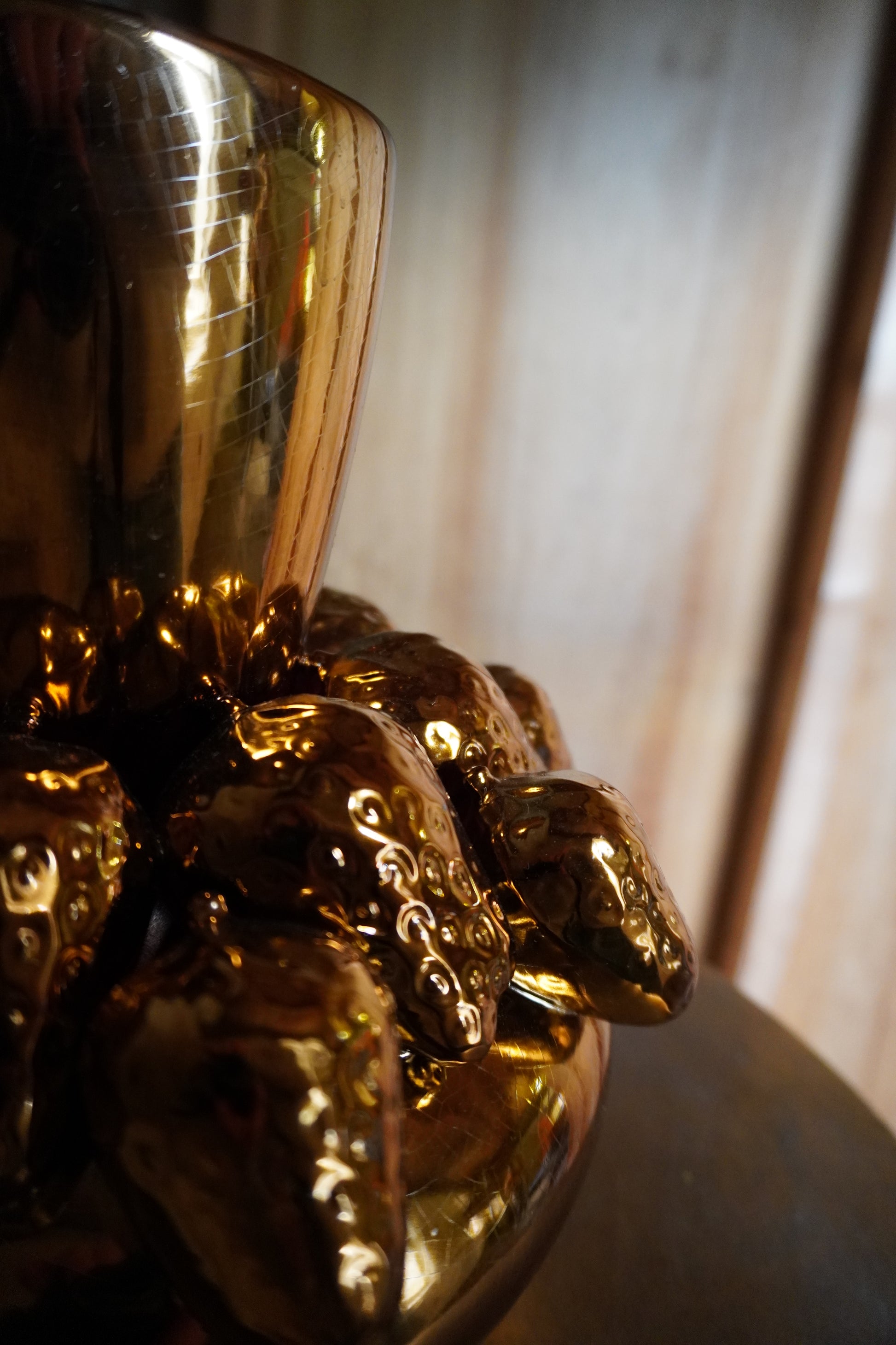 Aardewerk vaas - Goud, aardbijen, 23.5cm