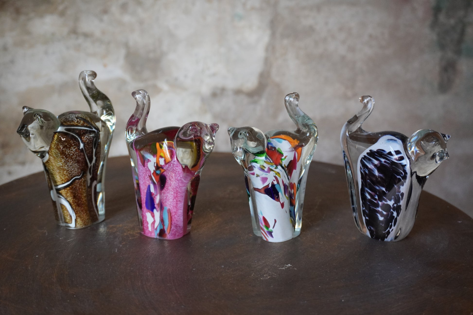 Glazen katten met kleur, hoogte ca. 13-14 cm.
