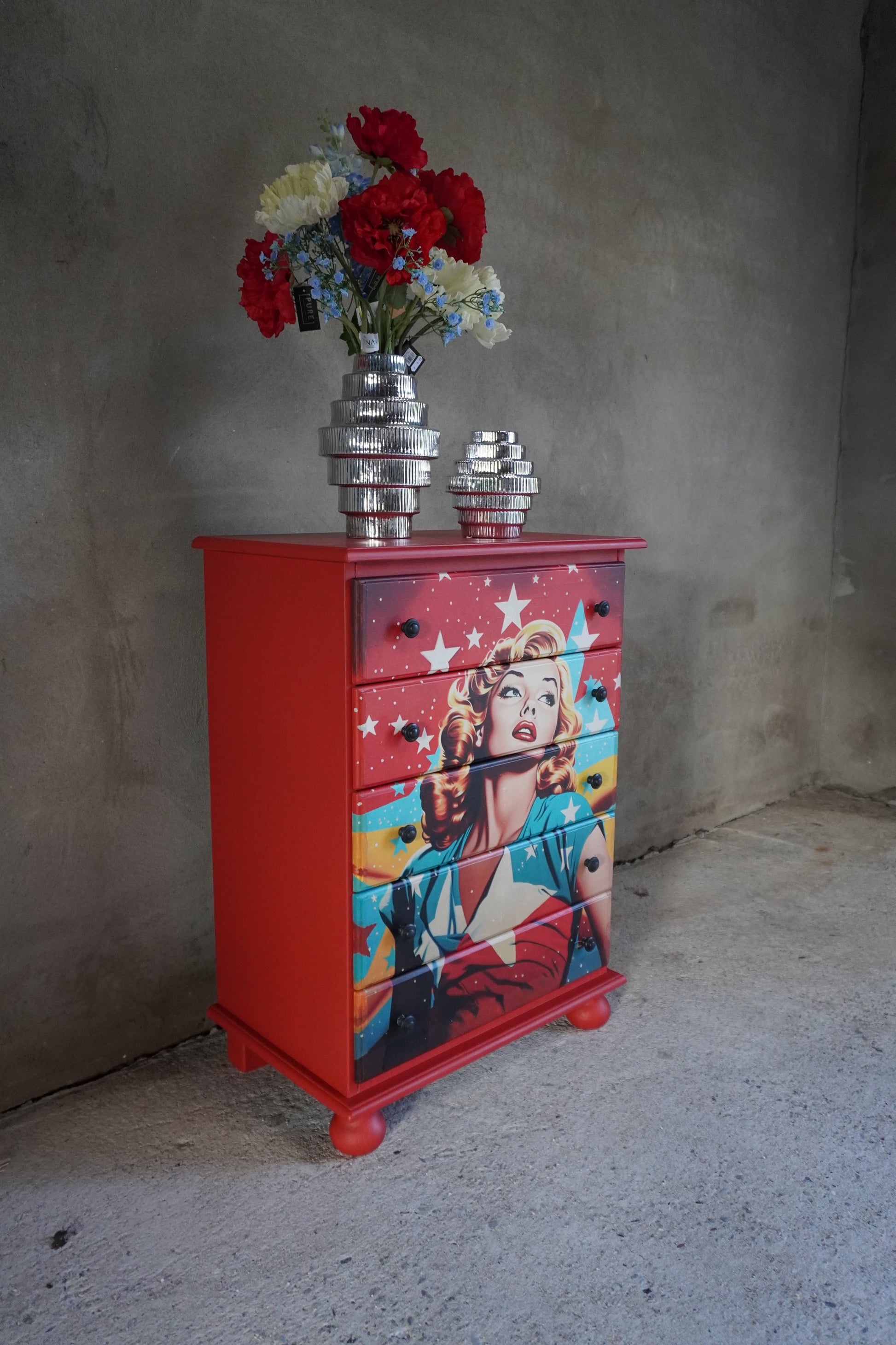 Deze aansprekende ladekast staat helemaal in het teken van niemand minder dan Marilyn Monroe.