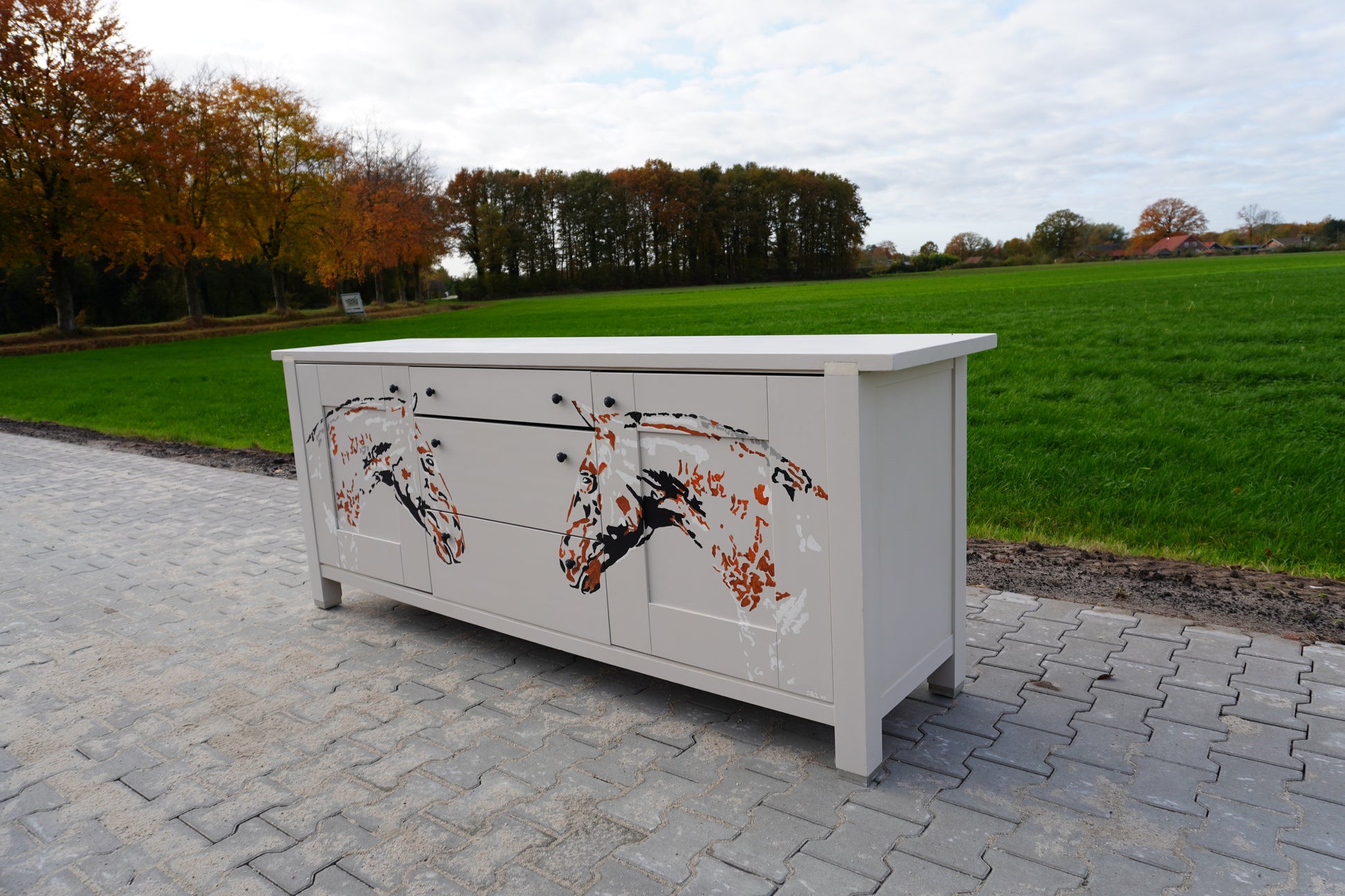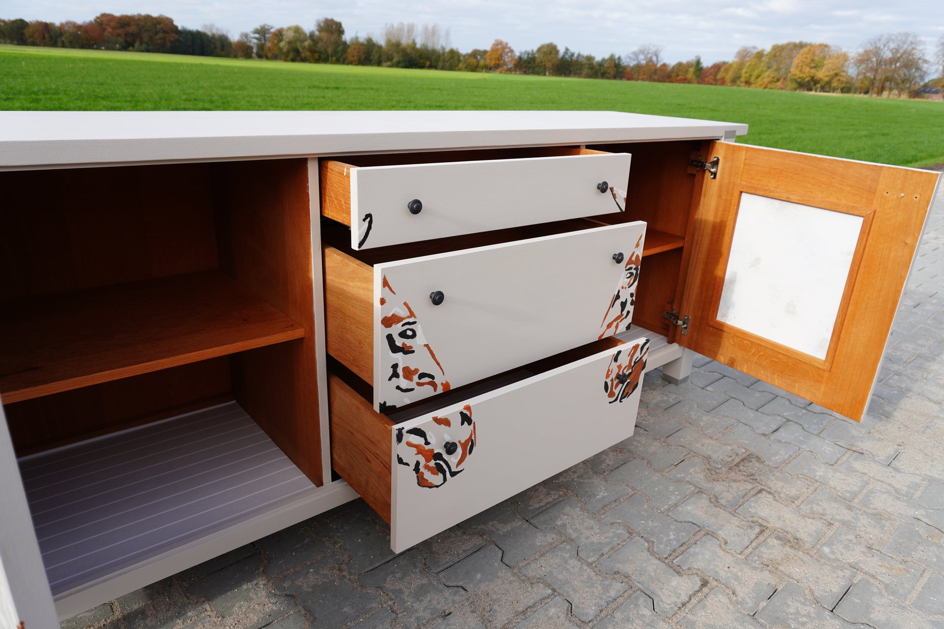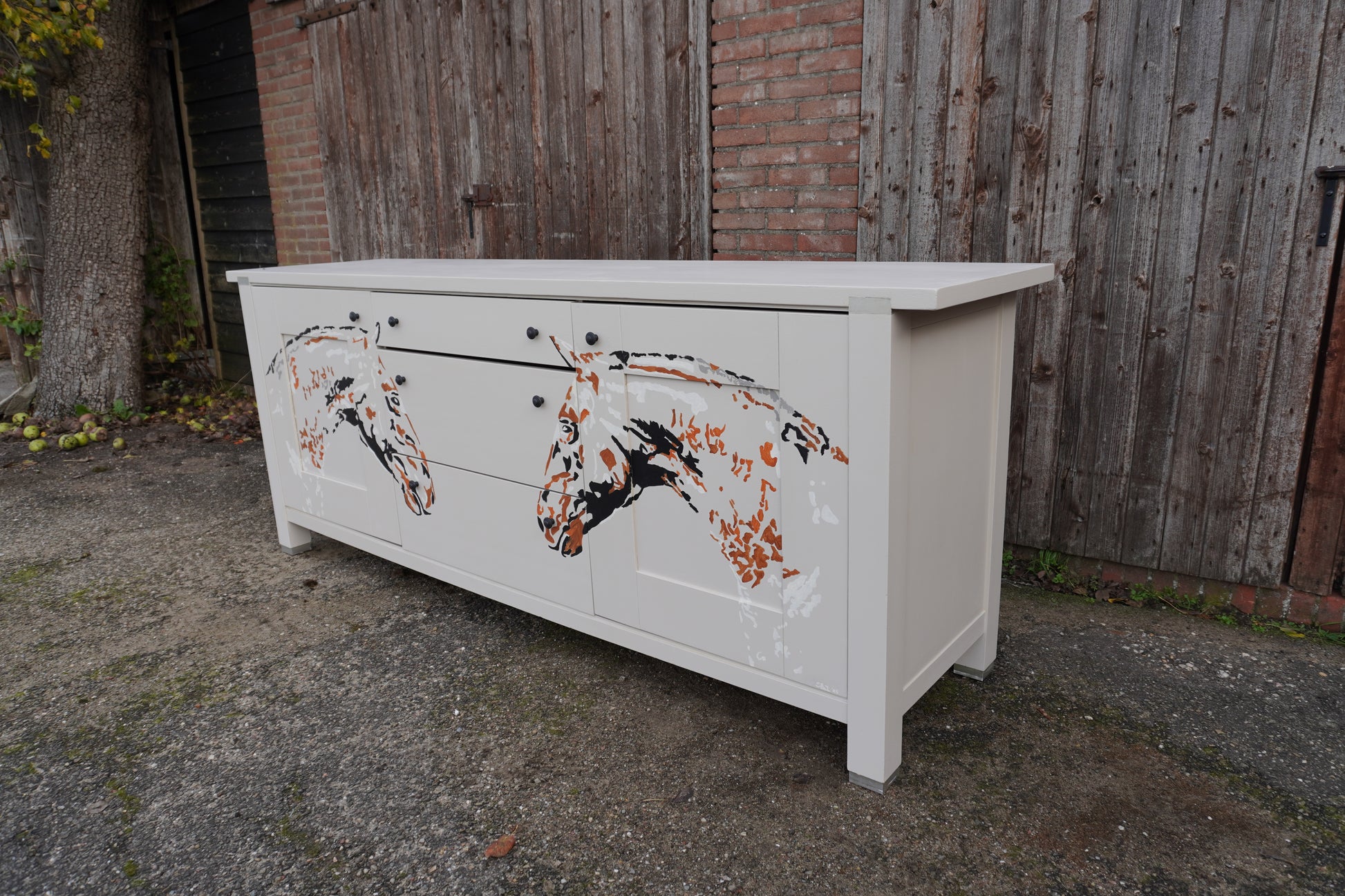 Dit dressoir is helemaal met de hand geschilderd en is dus ook een uniek kunstwerk.