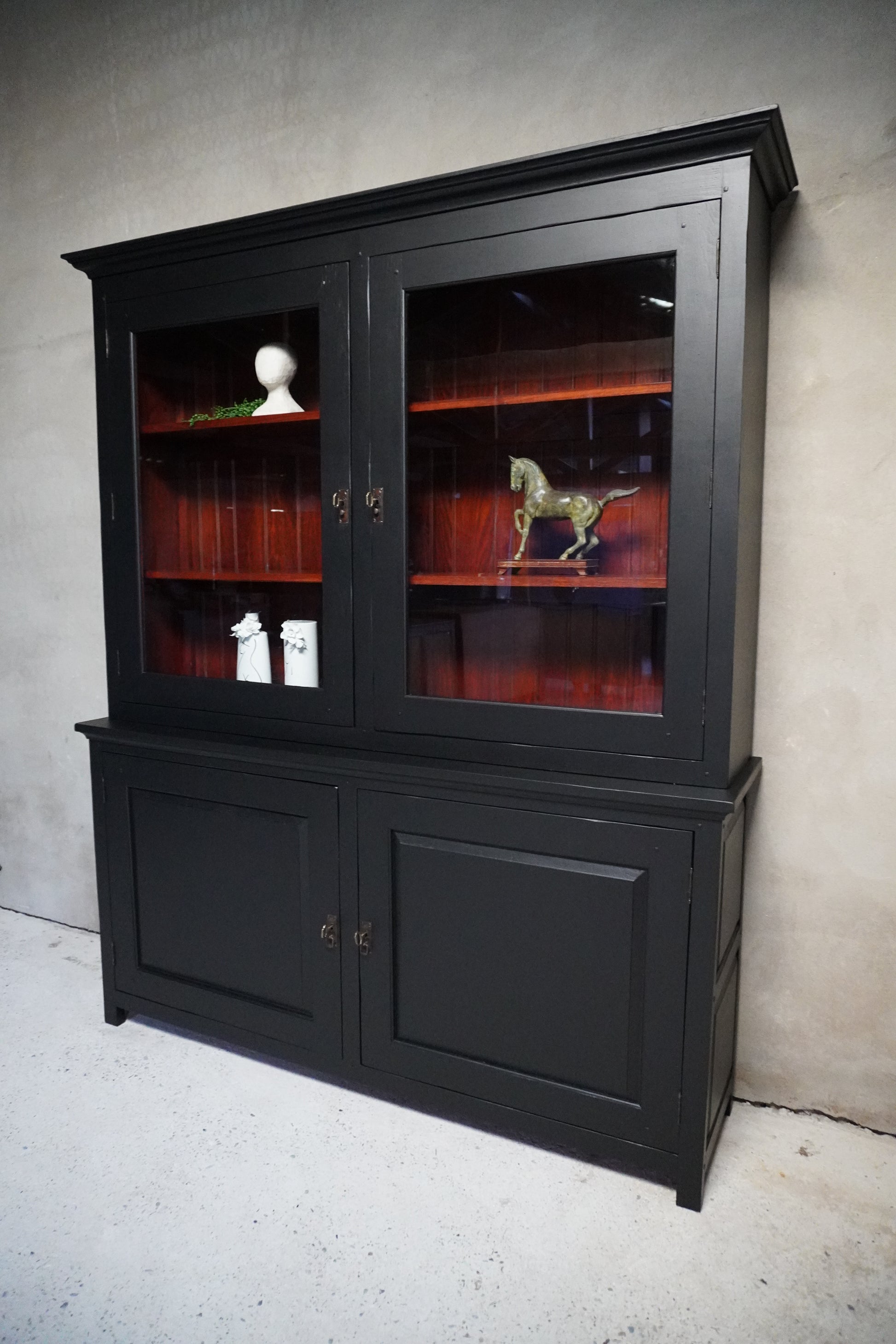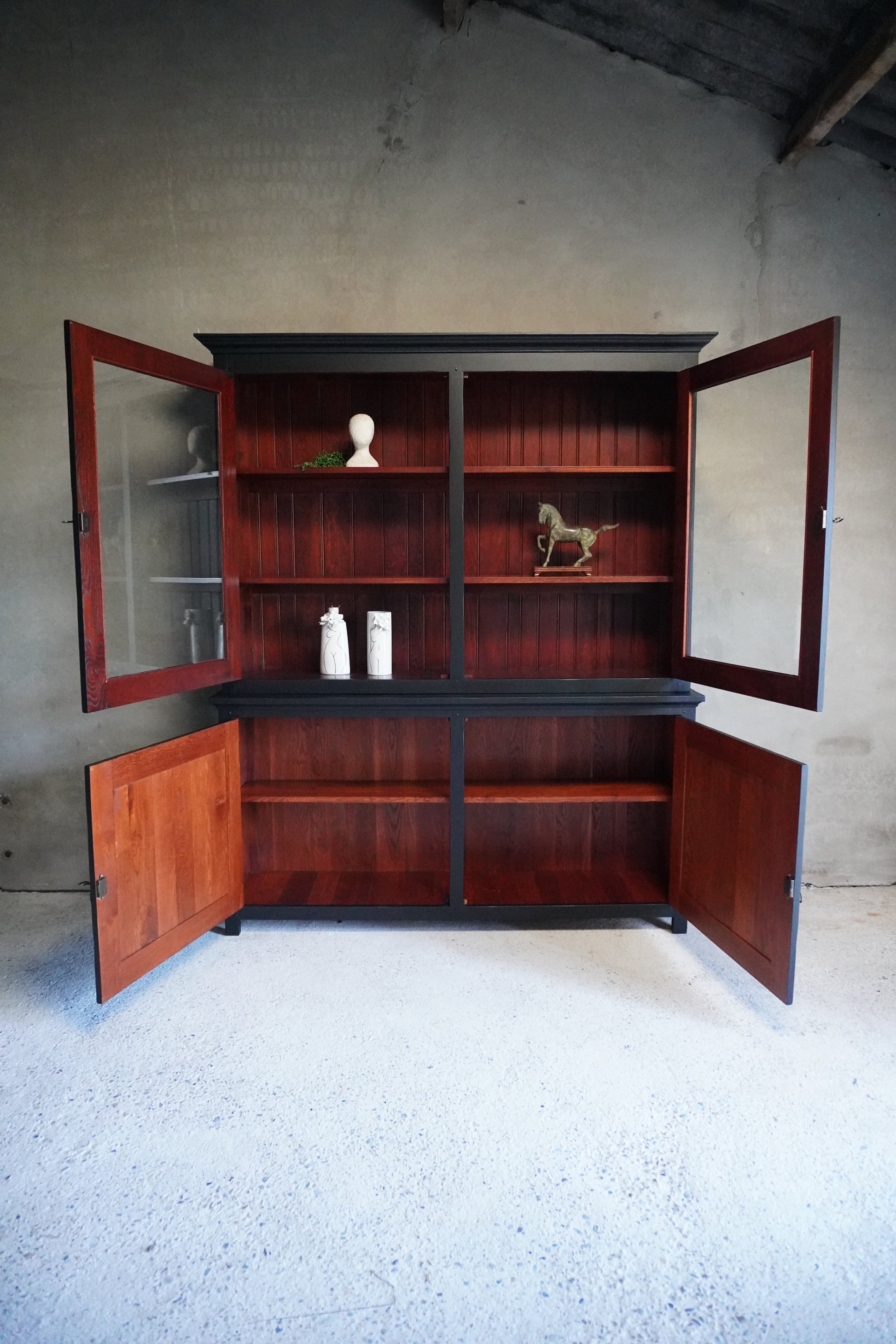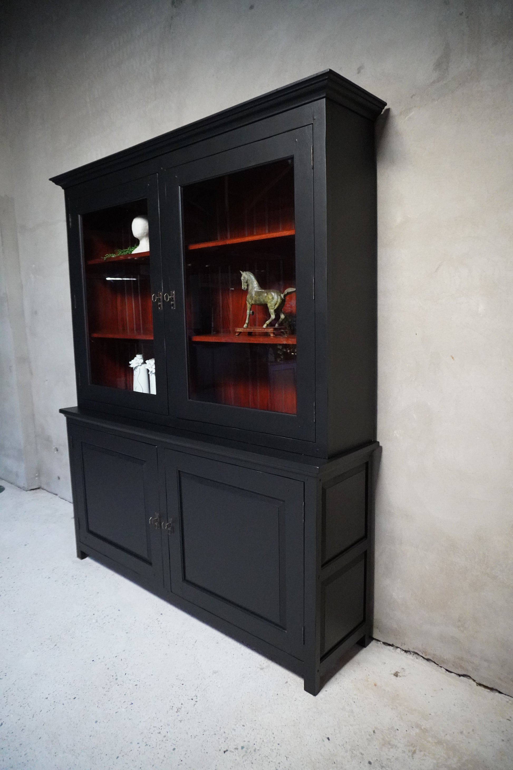 Deze prachtige buffetkast is gemaakt van kersenhout en van zware, degelijke kwaliteit. Wij hebben de kast een prachtige, moderne uitstraling gegeven in een warme zwarte kleur.