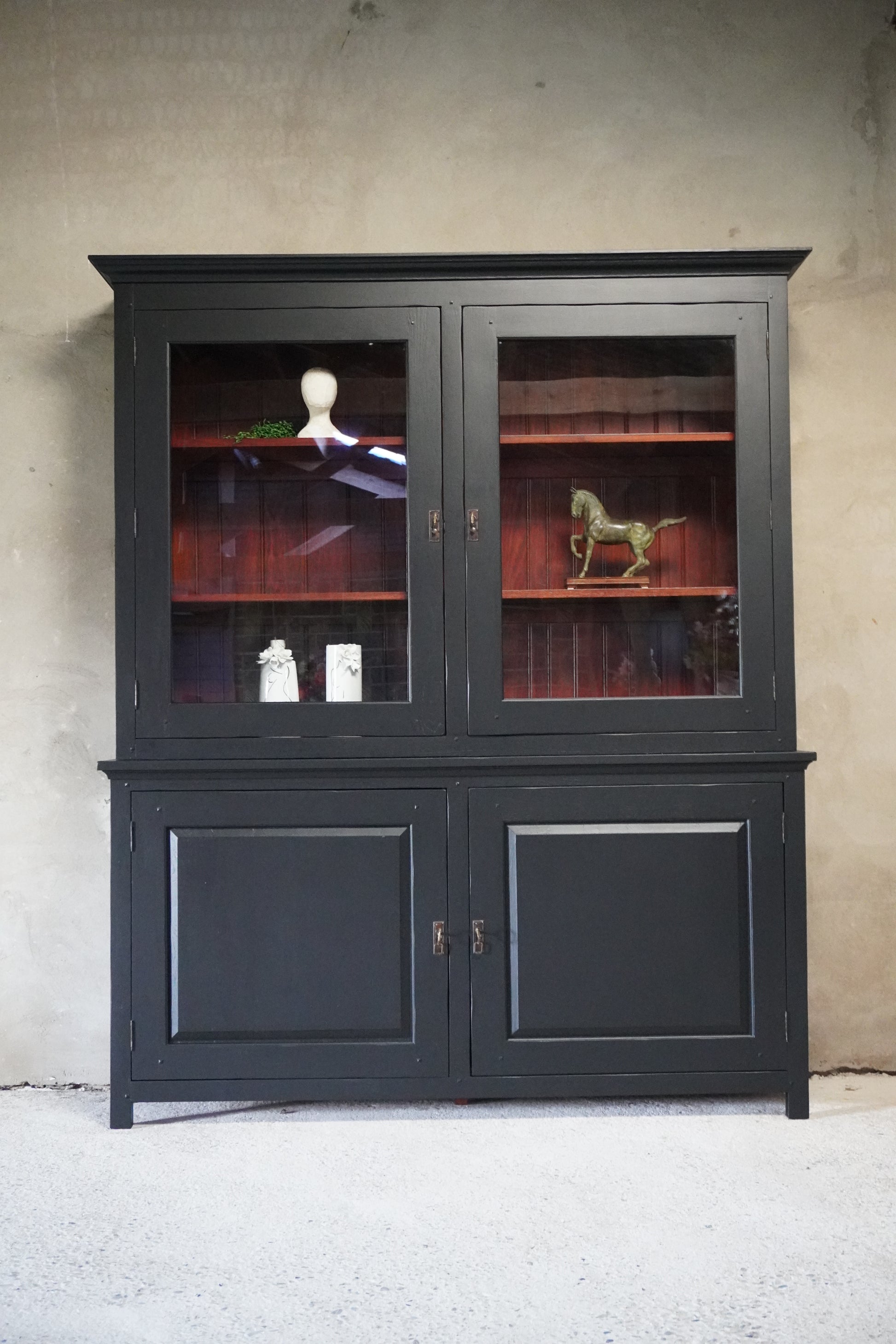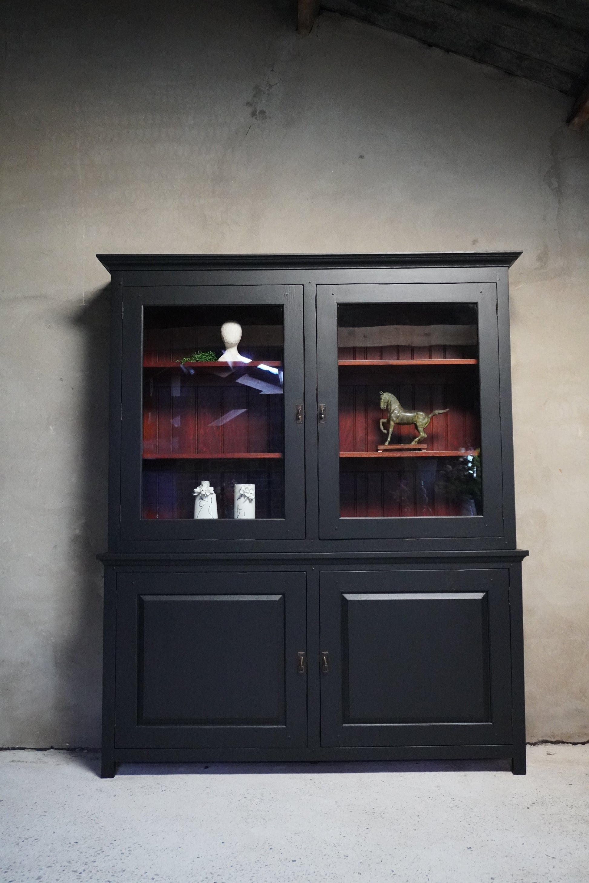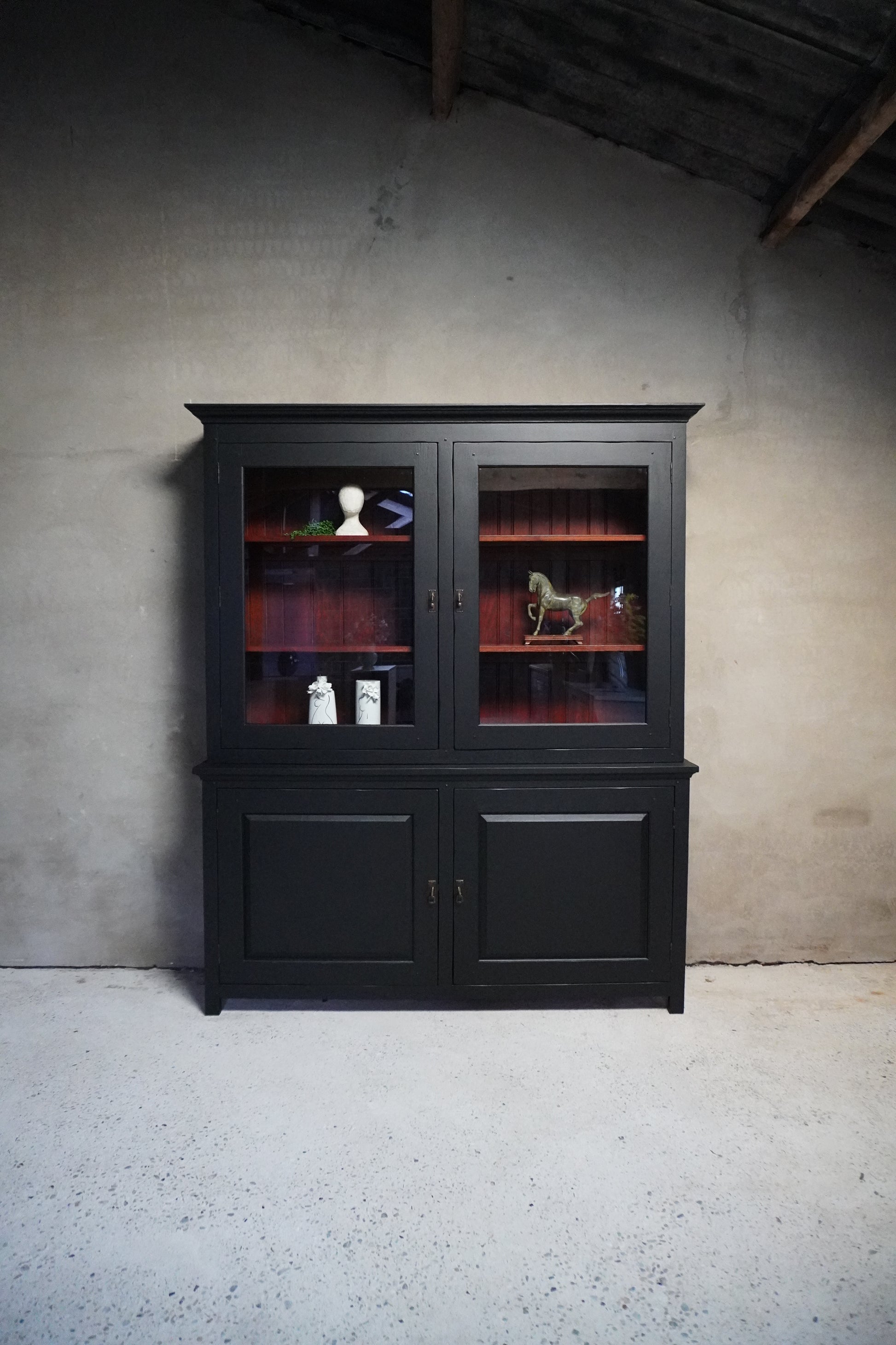 Deze prachtige buffetkast is gemaakt van kersenhout en van zware, degelijke kwaliteit. Wij hebben de kast een prachtige, moderne uitstraling gegeven in een warme zwarte kleur.